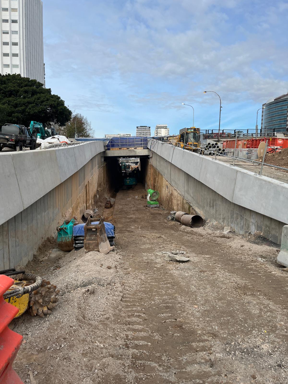 DT Infrastructure, in partnership with CPB Contractors, delivered the Mount Street underpass and celebrated its opening with Transport for NSW on 5 September 2025. The 46.6-metre-long underpass has been built to provide a dedicated access for Cahill Expressway motorists travelling to City East, Eastern Suburbs and Sydney Airport. The underpass was constructed by excavating more than 3000 cubic metres of sandstone and rock, brought to life by advanced engineering technology that completed the excavation in just 22 days. Built 'upside down' next to live traffic lanes, the roof of the structure was constructed first, allowing pedestrians to continue using Mount Street without detours during the tunnel excavation. NSW Minister for Roads, the Hon. Jenny Aitchison MP, who opened the underpass said, “The Mount Street underpass is the latest, vital piece of the Warringah Freeway puzzle which will help to make the freeway more reliable and efficient, and an easier and safer road to drive on.” DT Infrastructure is proud to provide infrastructure that supports Sydney's growing population and rising transportation needs.
