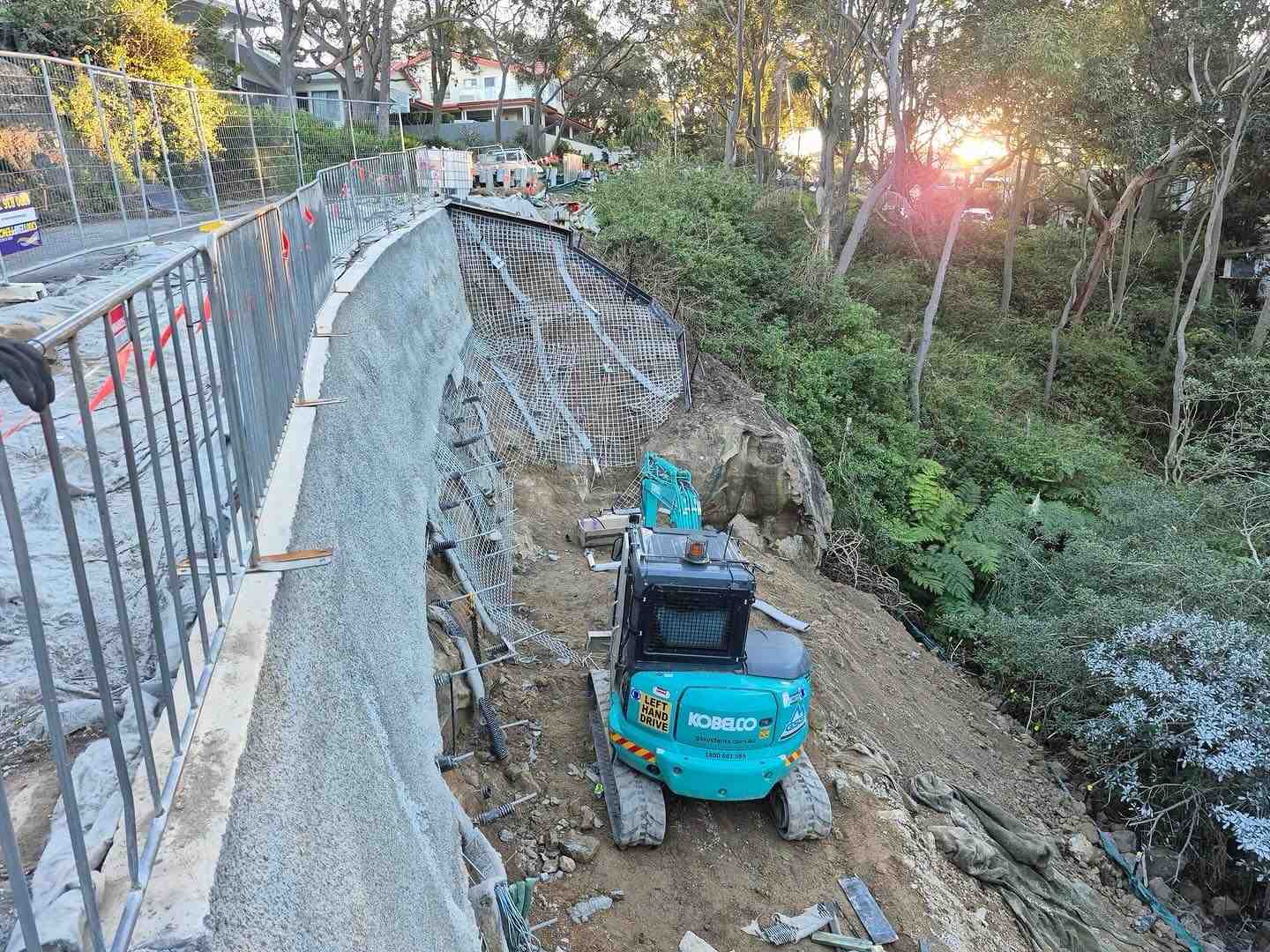 Shotcrete walls and shoring is a critical part of what we do in delivering landslip remediation projects. All this wet weather recently hasn’t made things easy, but that hasn’t dampened the spirits!